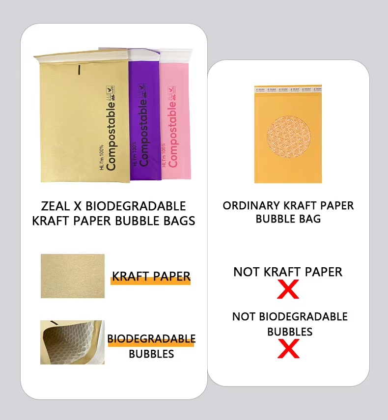 Zeal X به عنوان یک تولید کننده حرفه ای کیسه کاغذی، ارسال کننده های حباب کاغذ کرافت زیست تخریب پذیر کاملا قابل تنظیم، از جمله اندازه های سفارشی، چاپ آرم، و گزینه های وزن کاغذ را ارائه می دهد. این پستکنندههای کمپوستپذیر 100% زیست تخریبپذیر، غیر سمی و بدون آلودگی هستند و برای استراتژیهای بستهبندی پایدار ایدهآل هستند. با مقاومت در برابر پارگی قوی، طراحی سبک وزن و محافظت قابل اعتماد برای تحویل سریع، ارسال کنندگان حباب کاغذ کرافت ما مورد اعتماد فروشندگان تجارت الکترونیک جهانی هستند که به دنبال راه حل های حمل و نقل بدون پلاستیک سازگار با محیط زیست هستند.