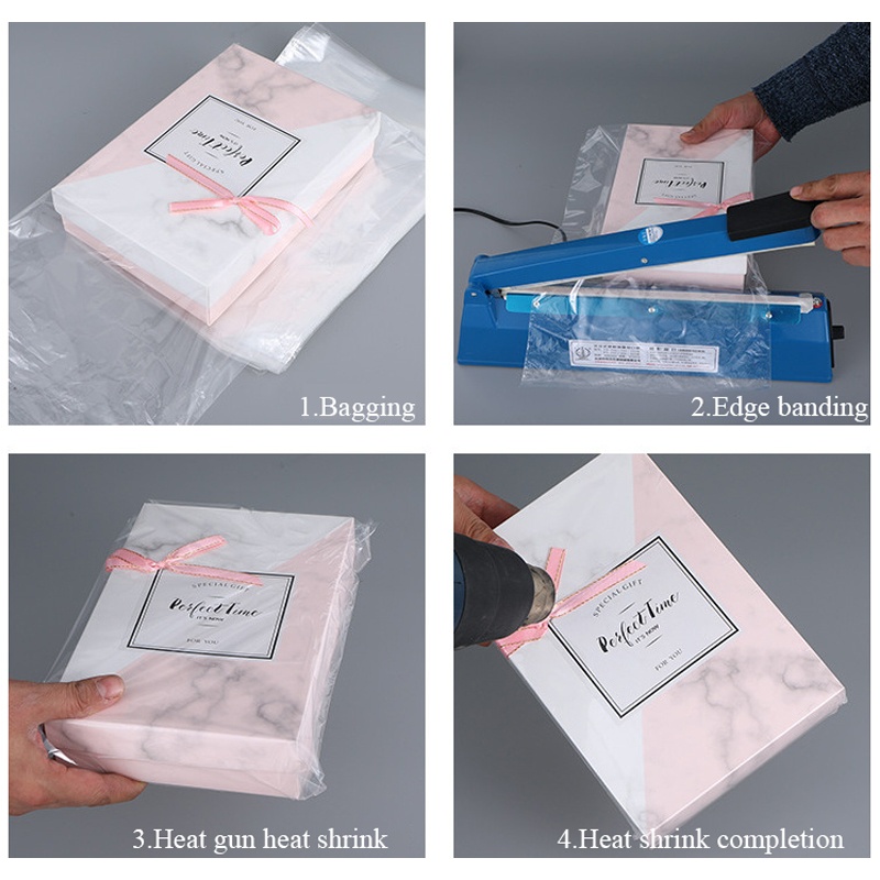 کاربرد: رول فیلم Shrink مناسب برای بسته بندی لباس، ملافه، پازل های هیت شرینک، لوازم التحریر، کتاب، قاب عکس، لوازم ساخت صابون، بمب حمام، بطری های روغن، جعبه های CD DVD، هدایا، شمع ها، لوازم آرایشی، کفش، بطری های شراب، سبدهای کوچک هدیه، صنایع دستی و غیره.
